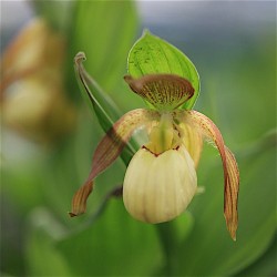 Cypripedium 'Gabriela' is a hybrid that combines two large-flowered species: Cypripedium kentuckiense from the USA and Cypripedium fasciolatum from the Himalayas. The plants have large, cream to yellow ovate flowers (each plant is slightly different). The hooves are surrounded by dark sepals, sometimes with purple veins. Cypripedium 'Gabriela XXL are...
