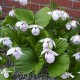 Le Cypripedium formosanum est une orchidée de jardin tout simplement magnifique. C'est une plante rustique, qui montre tôt au printemps une fleur précieuse aux sépales et pétales blancs maculés de rose violacé dominant un labelle renflé blanc strié et maculé du même ton.